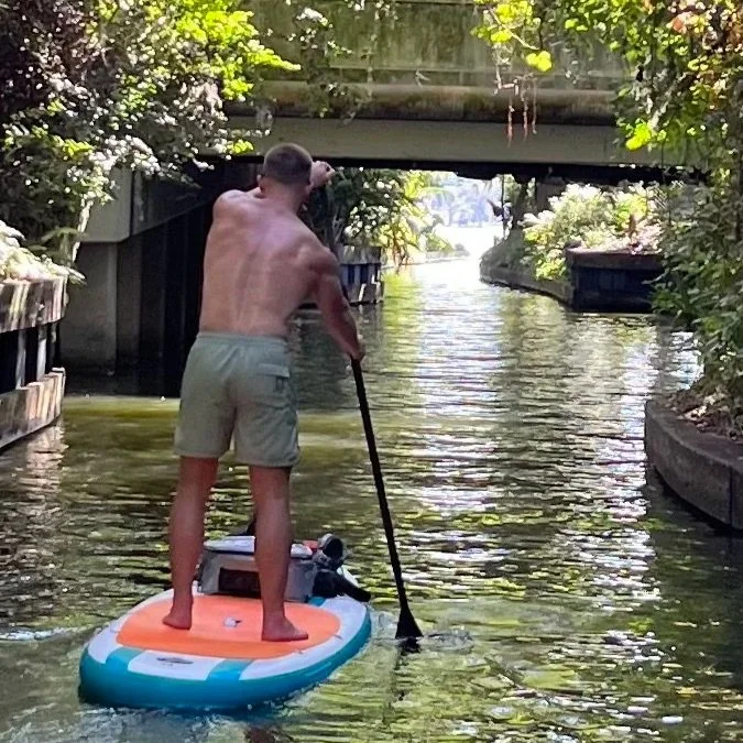 At the same time, training has never been about extremes. Outside the gym I enjoy getting outside, walking my dog Marino, and spending time on the water paddleboarding.